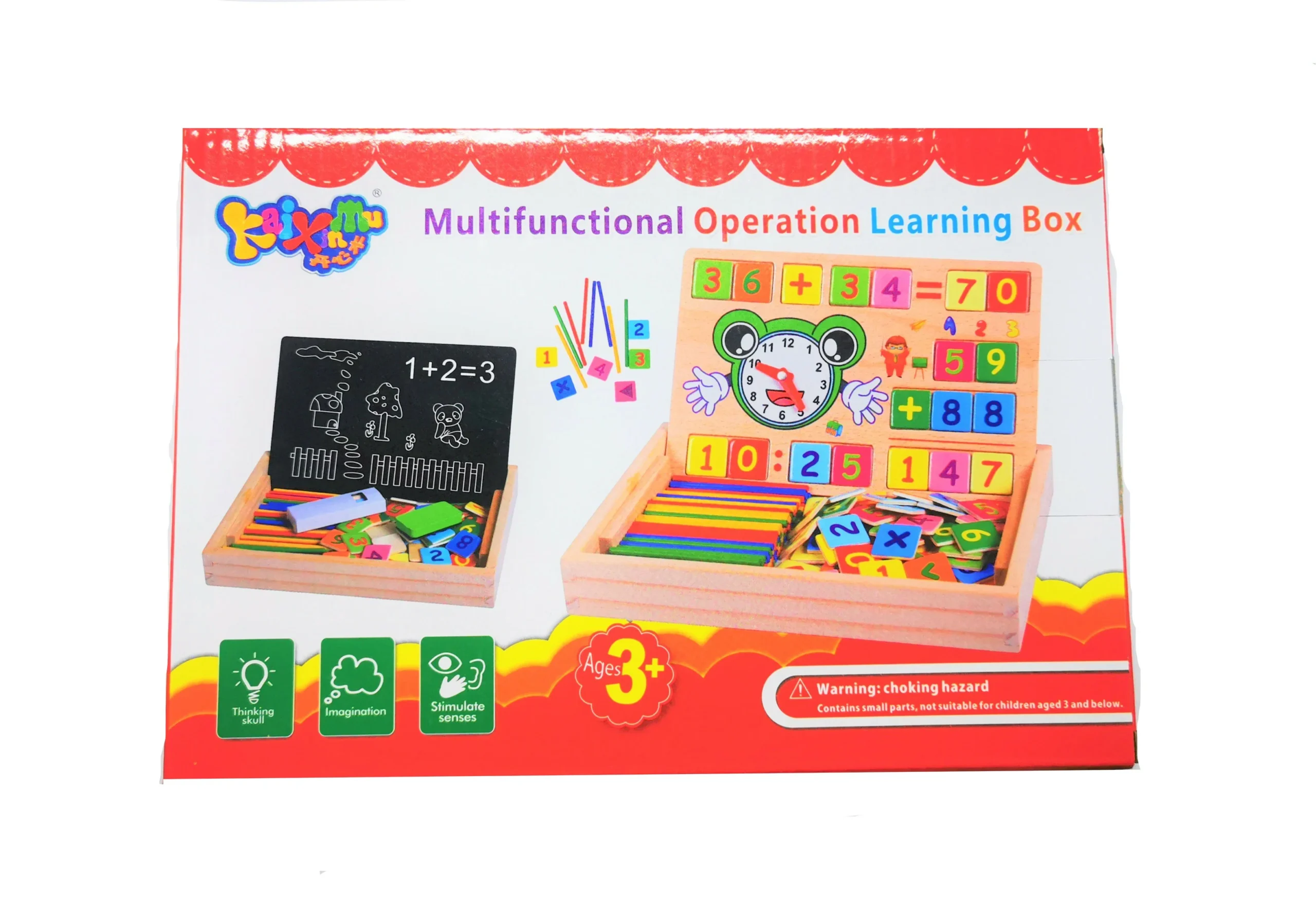 A fából készült matematikai tanulódoboz oktatási eszközként otthon vagy az iskolában egyaránt használható.
