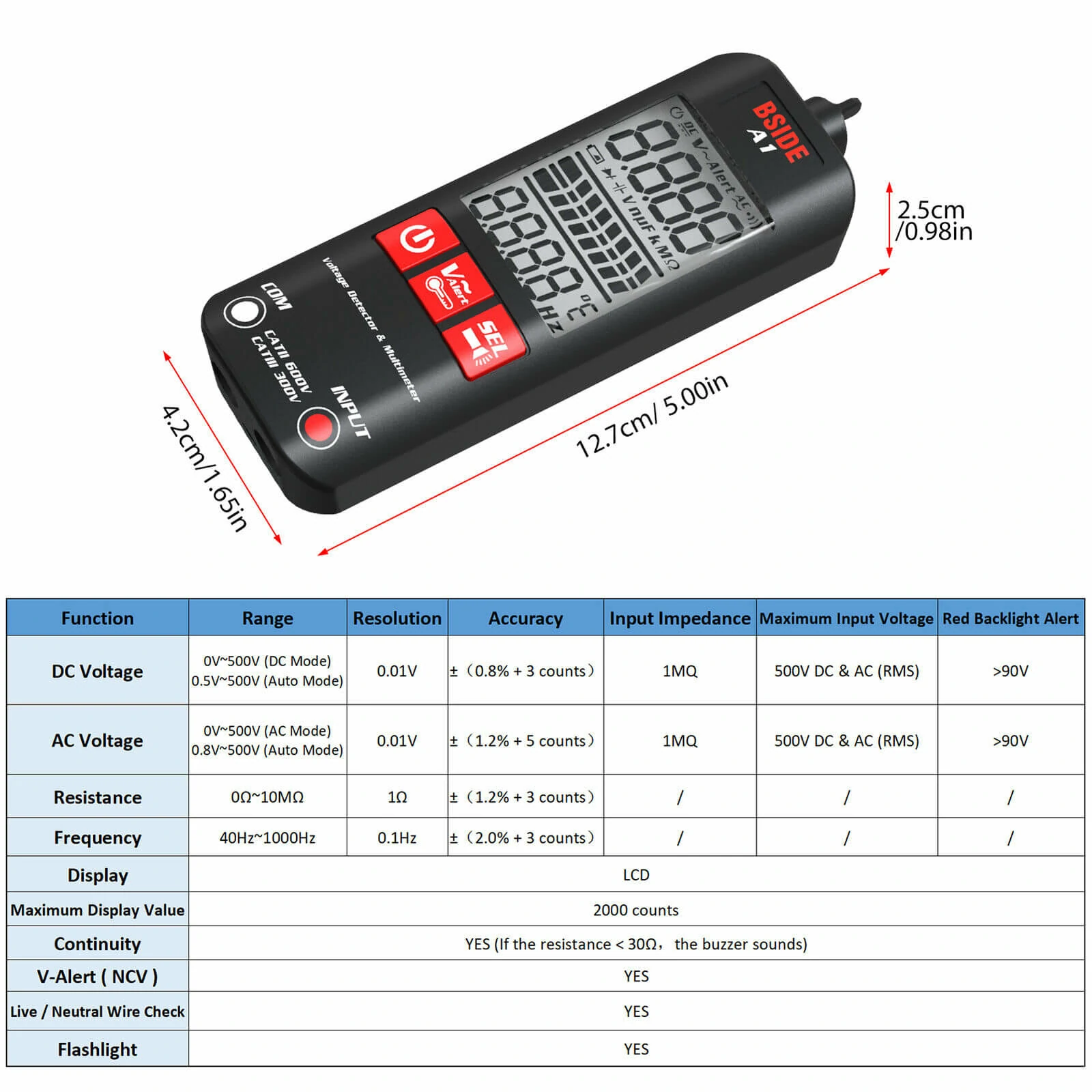 A feszültség, ohm, NCV, Hz és feszültség alatt álló kábel tesztelési lehetőségeivel ez a multiméter teljes körű megoldást kínál az elektromos teszteléshez.