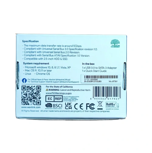 Az USB 3.0-SATA 3 adapter az operációs rendszerek széles skálájával kompatibilis, beleértve a Windows, Mac és Linux operációs rendszereket is.
